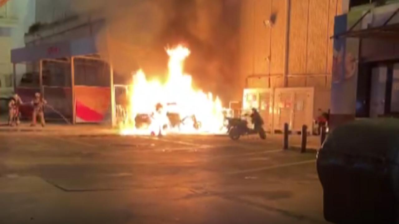 Görüntülerde alev alev yanan araçta patlamalar yaşanıyor. Olay yerine gelen itfaiye ekibi yangına müdahale ederek kısa sürede söndürüyor.