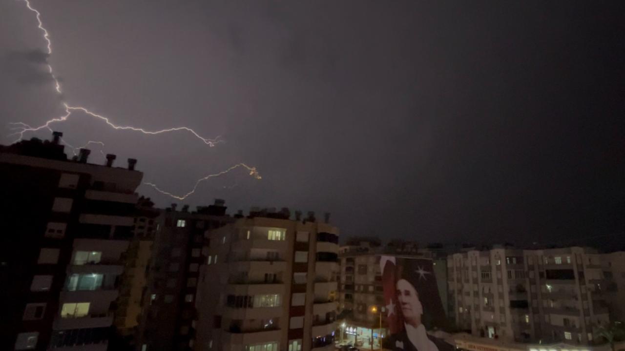 Yağışla birlikte zaman zaman şimşek çakması sonucu gökyüzü aydınlandı.