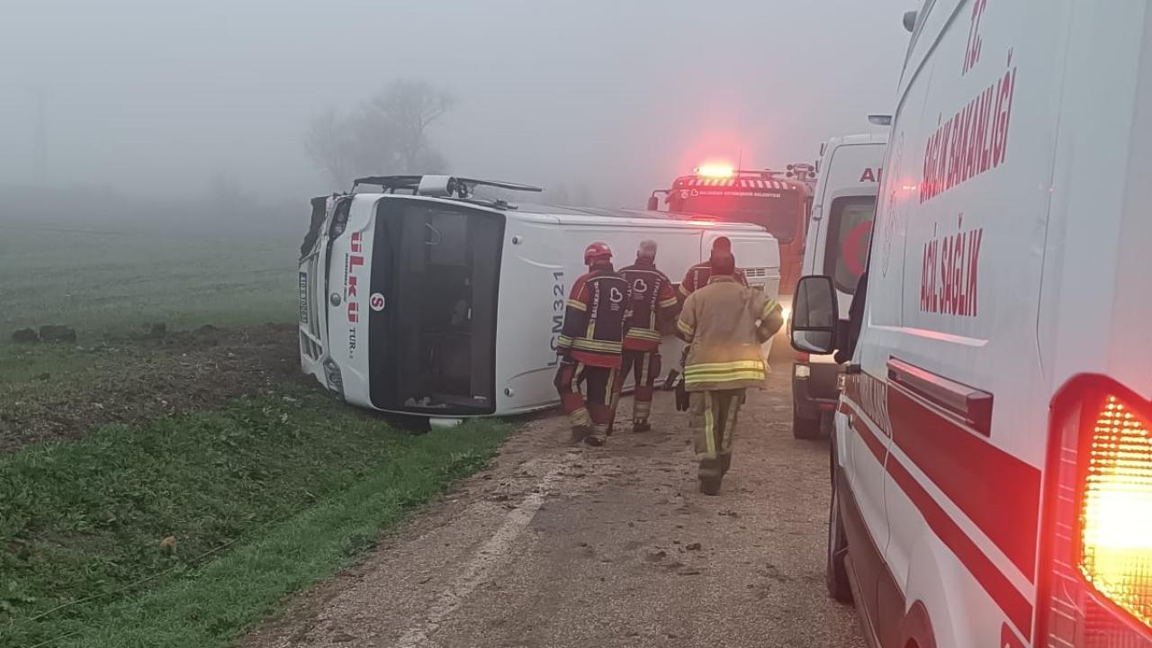 Balıkesir’in Bandırma ilçesinde N.T. yönetimindeki midibüs, ilçeye bağlı Külefli Mahallesi kara yolunda kontrolden çıkarak devrildi.
