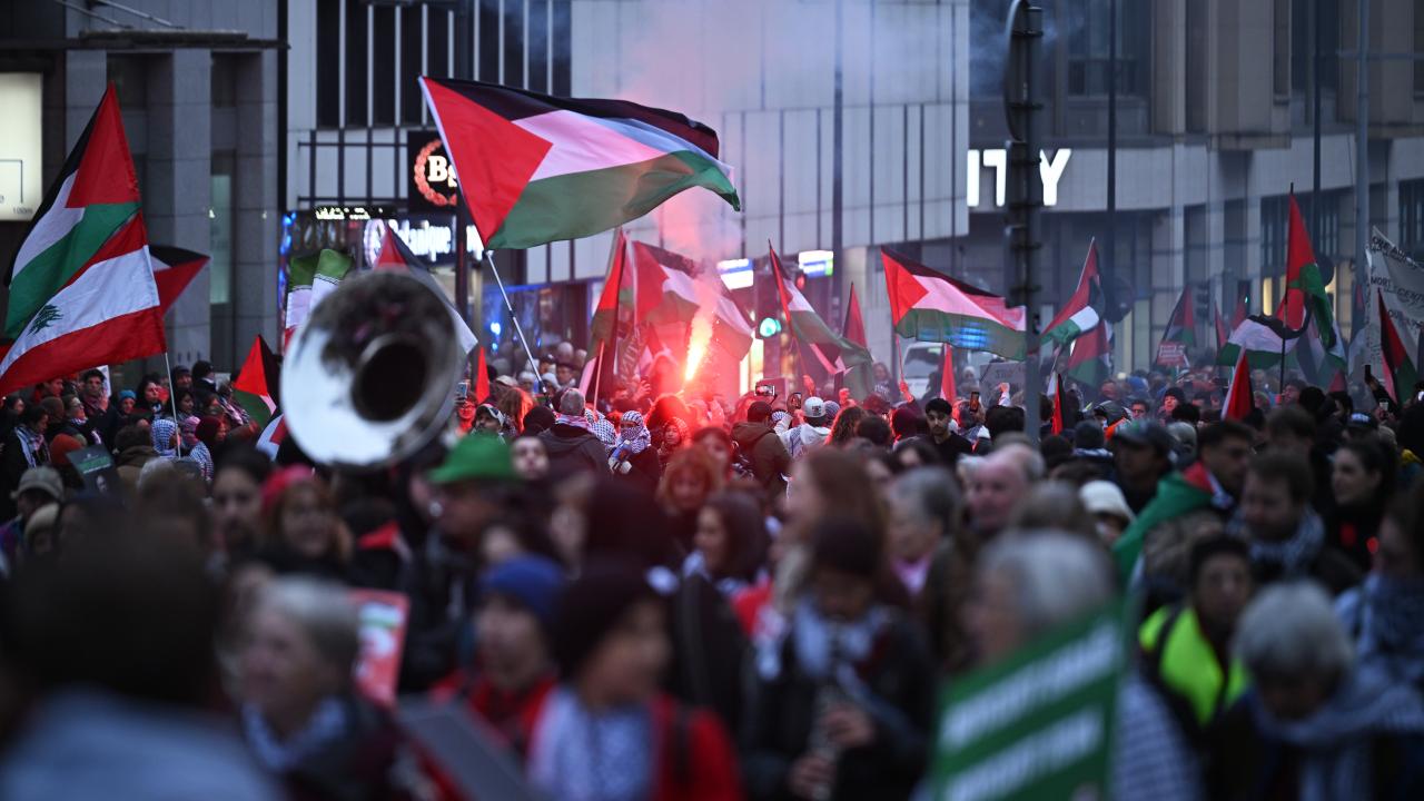 Başkentteki Kuzey Tren İstasyonu’nda bir araya gelen binlerce gösterici, Avrupa Birliği (AB) ile İsrail arasındaki Ortaklık Anlaşması’nın derhal askıya alınmasını talep etti.