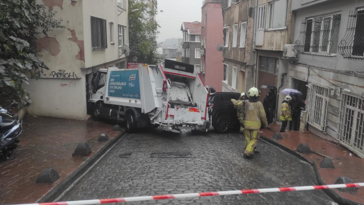 Gümüşsuyu Mahallesi Selime Hatun Camii Sokağı’nda, ilçe belediyesine ait çöp toplama kamyonu, önce park halindeki bir araca, daha sonra bir binaya çarparak durabildi.
