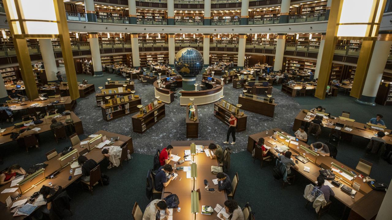 Cihannüma Salonu’nda 100’ün üzerinde ülkeye ait, 134 farklı dilden kitaplar okuyucuların hizmetine sunuluyor.