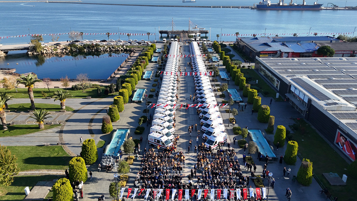 Samsun Büyükşehir Belediyesi tarafından Sağlık İl Müdürlüğünün acil sağlık hizmetlerinde kullanımı için alınan 100 ambulansın teslim töreni, Kurtuluş Yolu’nda yapıldı. Sağlık Bakanı Prof. Dr. Kemal Memişoğlu’nun katılımıyla gerçekleşen tören, saygı duruşu ve İstiklal Marşı’nın ardından protokol konuşmaları ile devam etti.