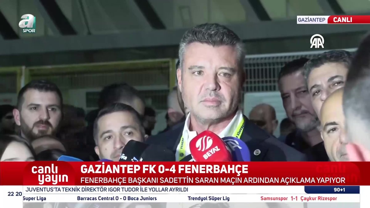 Fenerbahçe Başkanı Sadettin Saran, Gaziantep FK maçı sonrası bahis skandalı hakkında açıklamalarda bulundu. Saran,”Biz önümüze bakıyoruz. Biz bunları biliyorduk başından beri söylüyorduk. Biz hak yemeyen bir takımız, sahada mücadelemizi veriyoruz. Dışarıda olanlar bizi etkilemiyor. Bu yönetimin ilgileneceği bir şey, futbolcuların ilgileneceği bir şey değil. Bunu ortaya çıkardılar. Çıkaranları tebrik ediyorum. ” ifadelerinde bulundu.