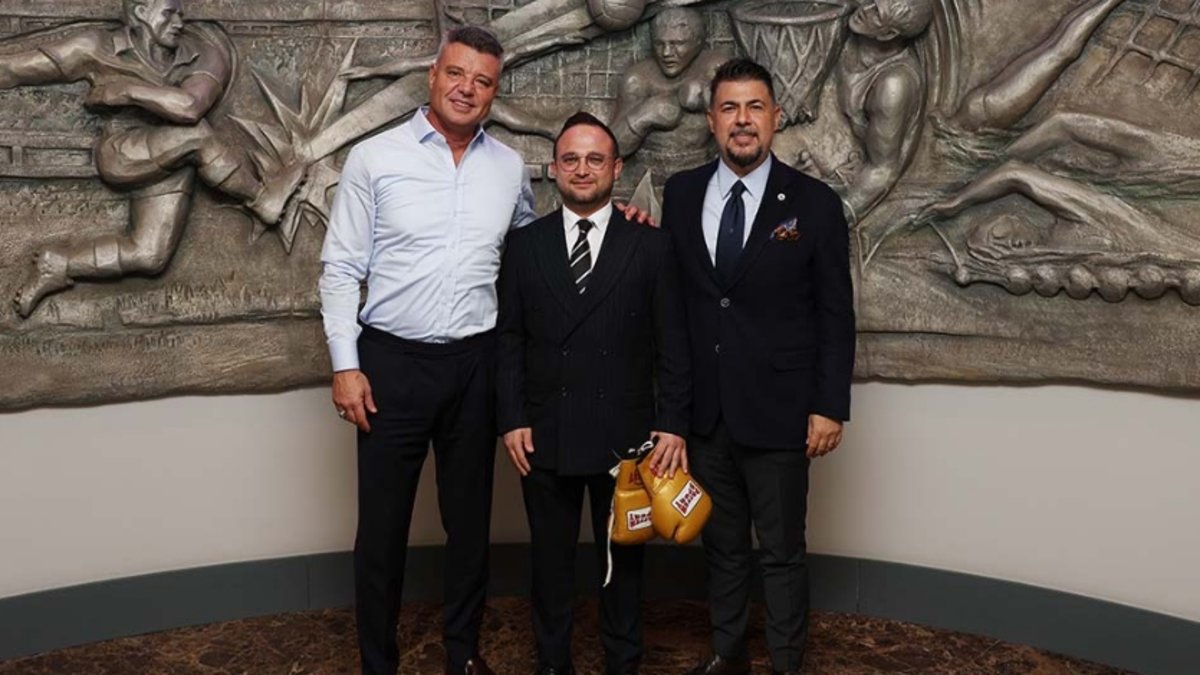 Başkan Sadettin Saran ve Bokstan Sorumlu Yönetim Kurulu Üyesi İlker Alkun ile bir araya gelen Atagün Yalçınkaya, ilk boks müsabakasında giydiği eldiveni Sadettin Saran’a takdim etti.