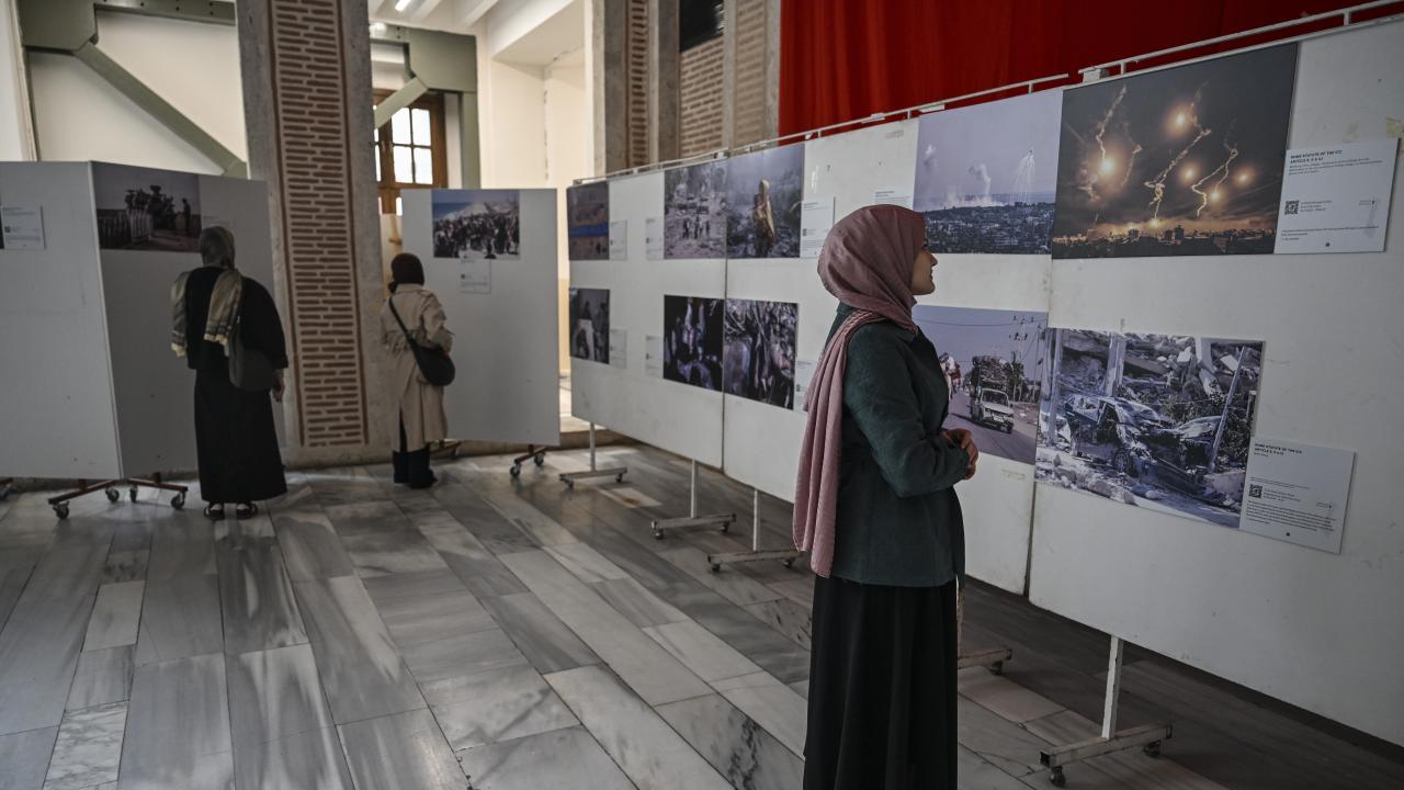 AA muhabirlerinin İsrail’in Filistin’de uyguladığı soykırım ve zulmü belgeleyen fotoğraflarından oluşan “Kanıt” kitabındaki görsellerden oluşan sergi, katılımcılar ve üniversite öğrencileri tarafından yoğun ilgi gördü.