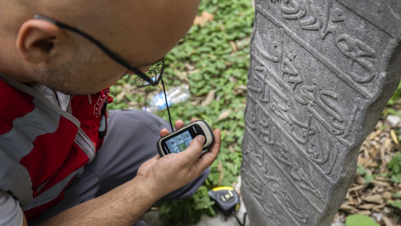 “Bazıları üçgen, bazıları kemer biçiminde, bazılarının da başlıkları var. Üst kısım biçimlerine ve gövde tiplerine göre mezar taşlarının envanterini yapıyoruz. Kadın ve erkek mezar taşlarını ayırt edebiliyoruz. Özellikle Osmanlı döneminde erkek mezar taşlarında kavuk, sarık ve fes örnekleri var. Kadın mezar taşlarında da hotozlu örnekler çok fazla, süslemeler biraz daha artıyor. Tabii ki sadece kitabeler okunmuyor süslemelerini de kayıt altına almaya çalışıyoruz. Bir de orijinal mezar tiplerini de envanterimize kaydediyoruz.”