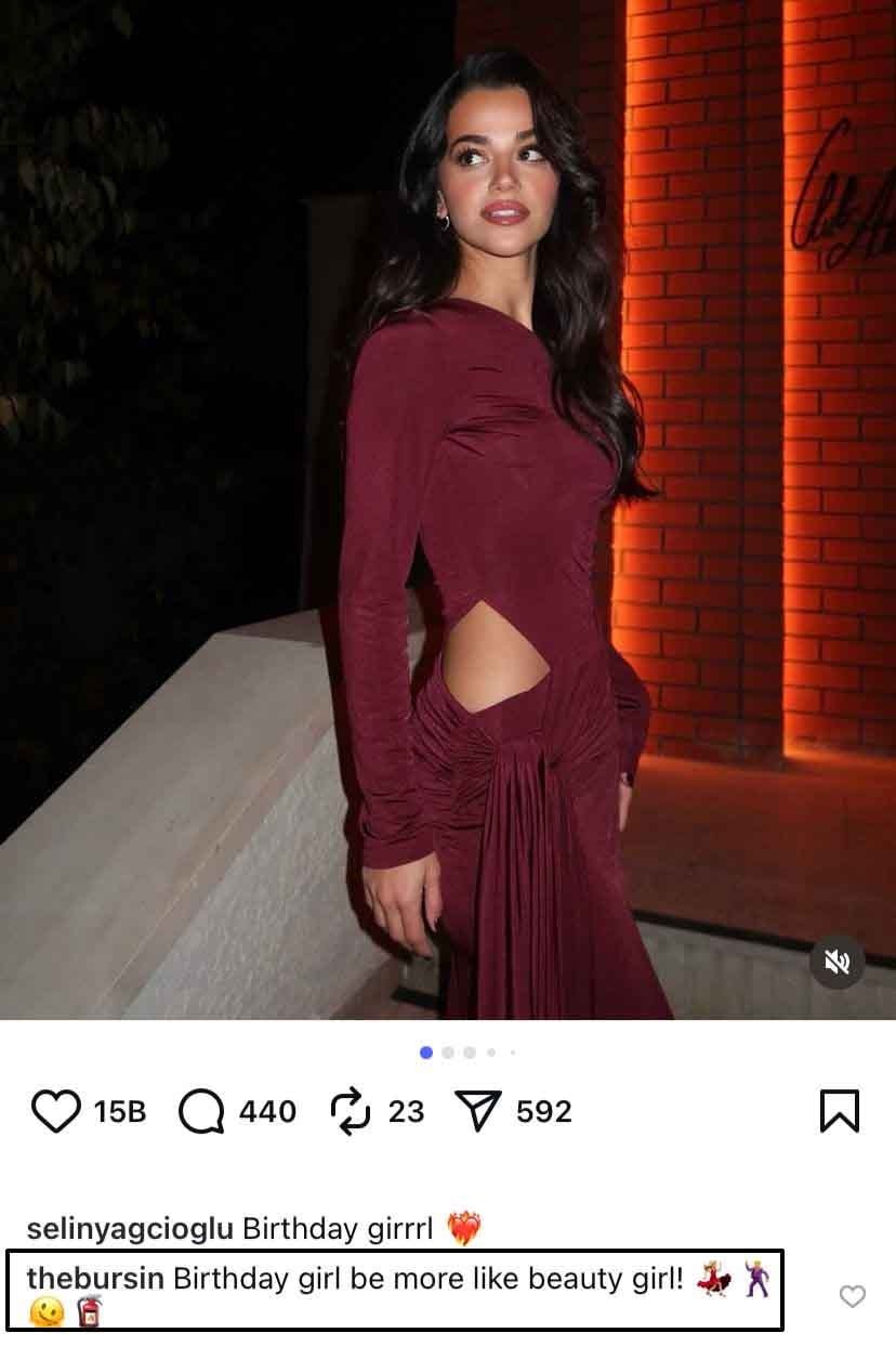 Selin Yağcıoğlu’nun doğum günü fotoğraflarına kayıtsız kalamayan Bürsin, yaptığı “Doğum günü kızı, daha çok güzellik kızı gibi olsun!” yorumuyla ilişkisini doğrulamış oldu.