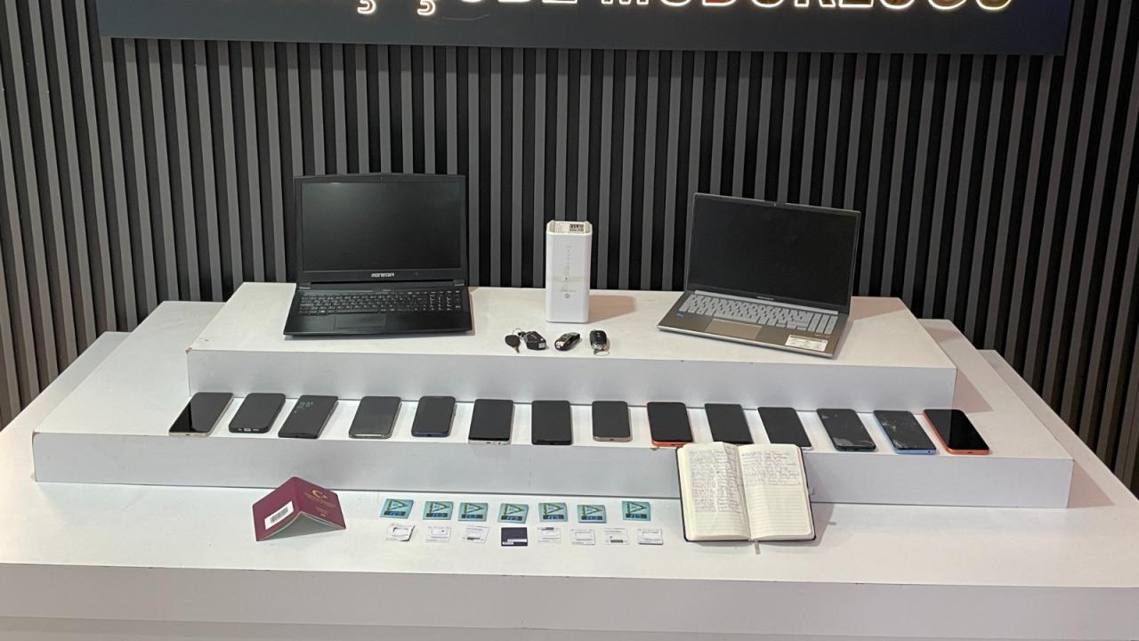 Adreste yapılan aramada, 14 cep telefonu, 20 SIM kart, 2 dizüstü bilgisayar, internet sağlayıcı ve içerisinde çok sayıda iletişim numarası bulunan ajanda ele geçirildi.