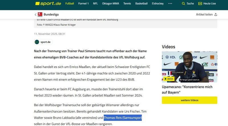 Alman basınında çıkan haberlerde tecrübeli çalıştırıcının yanı sıra Wolfsburg’un listesinde şu an takım çalıştırmayan Urs Fischer, Tim Walter ve Bruno Labbadia’nın da yer aldığı ifade edildi.