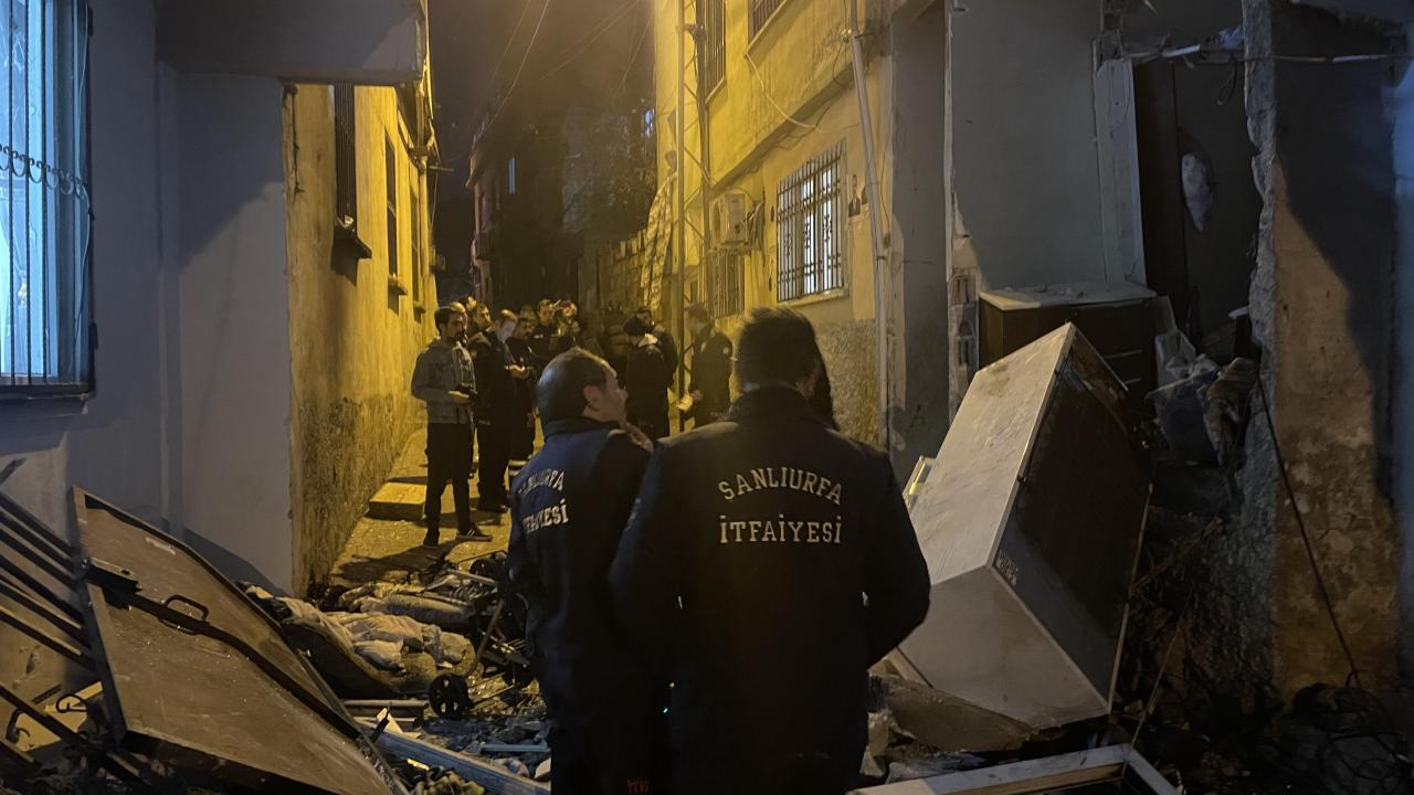 Patlama sonucu, sokağa bakan dış duvarının yıkılmasıyla eşyalar dışarı savruldu, evde büyük hasar oluştu.