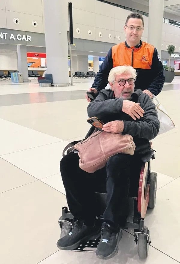 Usta oyuncu “Havalimanı çok uzun, nsan yoruluyor. Ondan oturdum tekerlekli sandalyeye. Arnavutköy’de görürseniz beni sandalyede, gelin yanıma. 8 kilometre havaalanı git git bitmiyor. Yine gideceğim, tekerlekli sandalyemi hazırladılar” diyerek kahkaha attı.