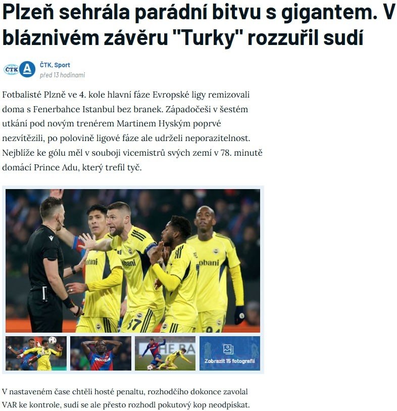 Çekya basınında da son dakikalarda yaşanan bu pozisyonda hakemin kararının doğru olmadığı ve Fenerbahçe’ye hak verildiği görüldü. Kaleme alınan haberde; ‘Uzatma dakikalarında konuk ekip penaltı bekledi, hakem VAR tarafından pozisyonu izlemeye çağrıldı, ancak buna rağmen penaltı kararı verilmedi.’ denildi.